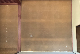 - 土壁の上塗りは京都の聚落から運んだもの。